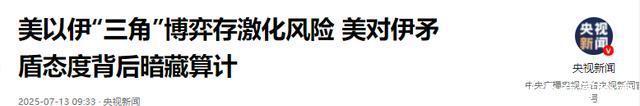 央视新闻——美以伊“三角”博弈存激化风险美对伊矛盾态度背后暗藏算计
